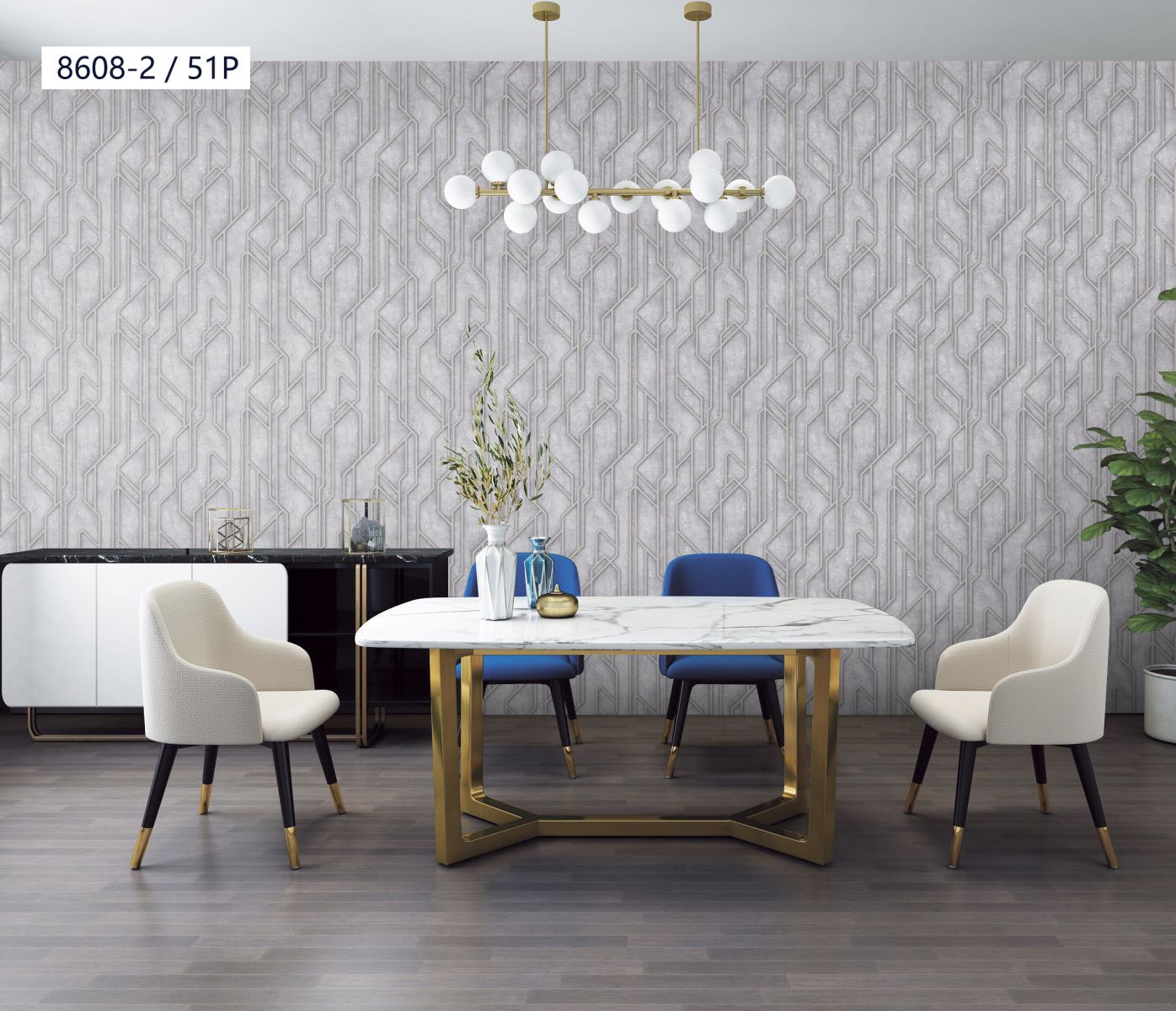 2. Giấy dán tường vinyl: Đây là loại phổ biến nhất, với lớp phủ nhựa giúp chống nước, chống ẩm mốc và dễ vệ sinh, phù hợp cho nhà bếp, phòng tắm.