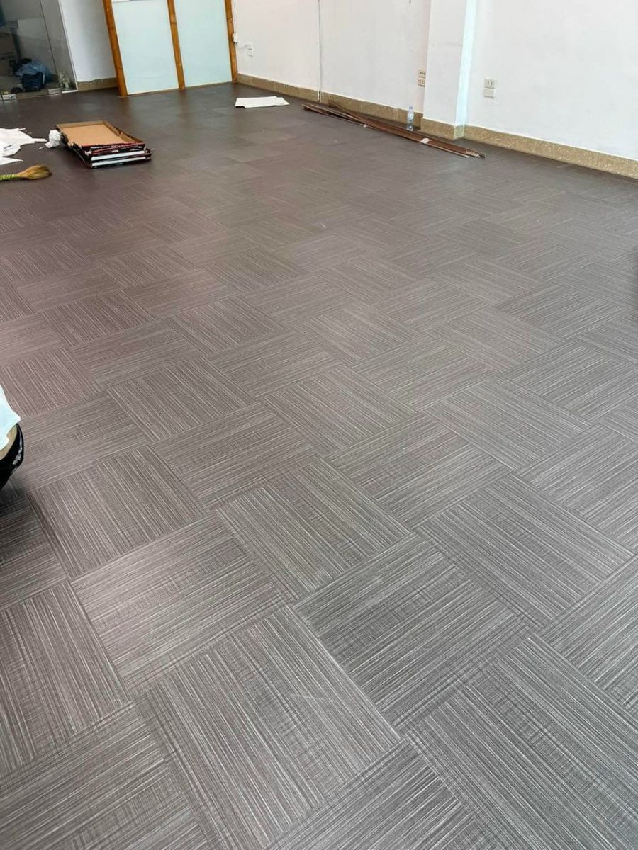 Dù là sàn keo dán nhưng sản phẩm vẫn có hình thức đẹp không thua kém các loại sàn gỗ hay sàn gạch thông thường. Màu sắc ghi xám mang lại vẻ sang trọng cho căn nhà của bạn.