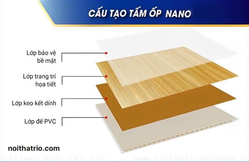Tấm nhựa ốp tường nano được tạo thành từ 4 lớp chính gồm: