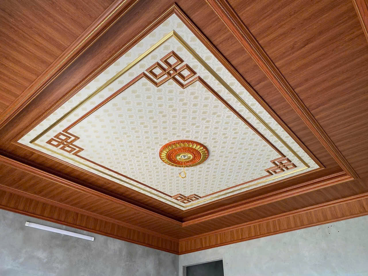 Trần nhựa Nano Giật cấp : 500.000 - 1.000.000VNĐ/m2 (bao gồm vật tư + thi công + Khung xương sắt hộp + Phào chỉ trang trí mâm góc...)
